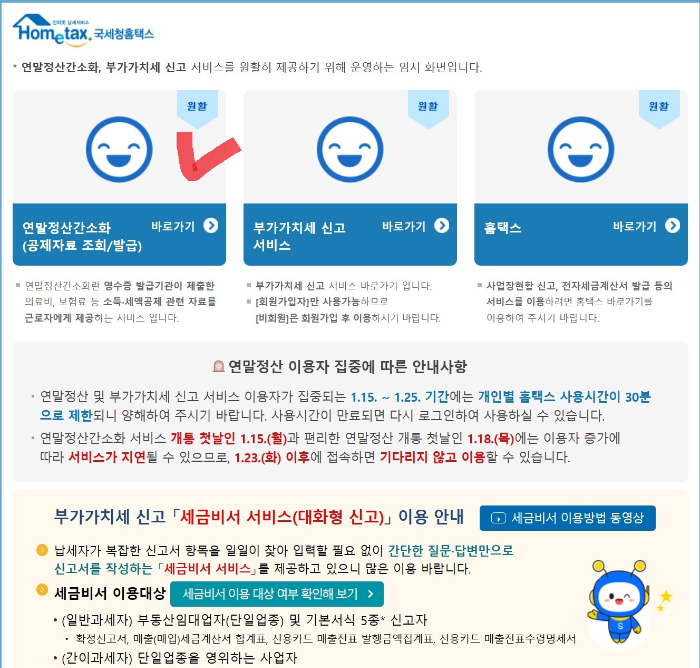 15일 오늘부터 연말정산 소득·세액공제 증명자료를 조회할 수 있는 간소화 서비스가 개통되었습니다.