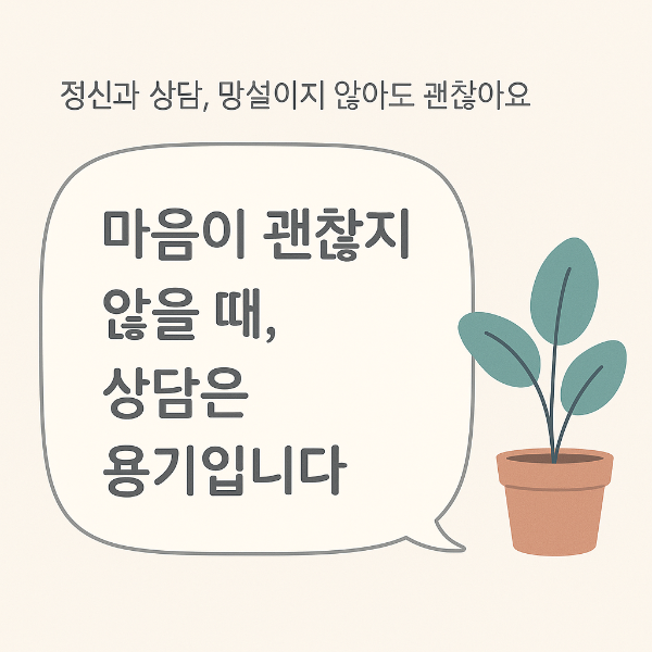 정신과 상담은 마음이 아플 때 더 건강해지기 위한 과정입니다.