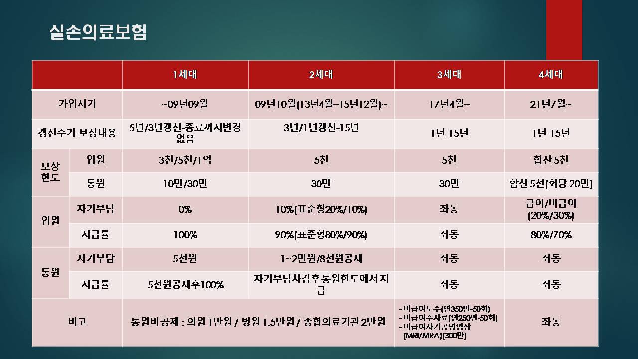 실손보험은 가입연도에 따라서 보장의 내용이 많이 다릅니다.
