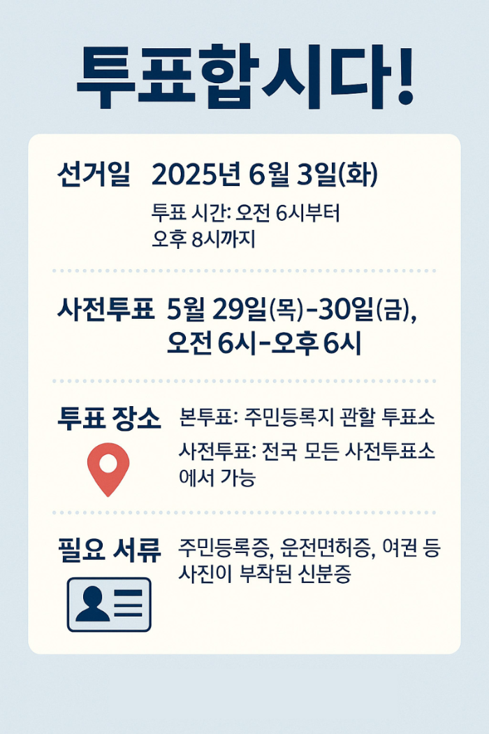 2025년 6월 3일, 대한민국 제21대 대통령 선거가 치러집니다.